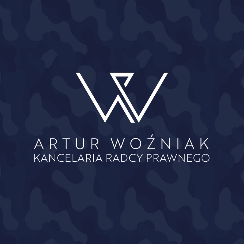 Specjalistyczny monogram W na granatowym tle z charakterystycznym motywem kamuflażu wojskowego. Unikalna identyfikacja wizualna podkreślająca specjalizację i profesjonalizm w prawie wojskowym.
