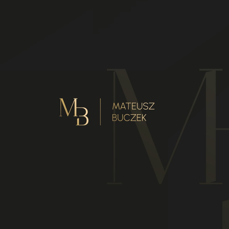 Minimalistyczne logo MB w złotym wykończeniu na ciemnym tle. Czarno-złota kompozycja budująca luksusową i prestiżową identyfikację wizualną dla wymagających klientów.